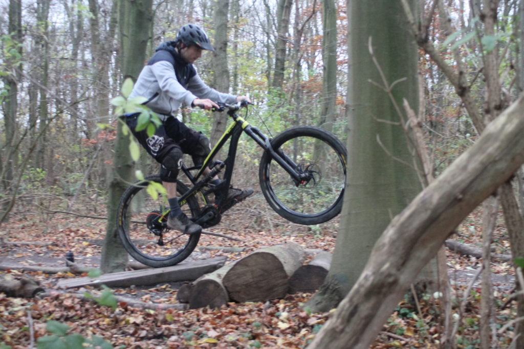 In de vervolg trainingen, op de zondagen, gaan we onder andere aan de slag met de technieken voor het klimmen, het dalen, het balanceren op de fiets (surplace), het rijden van mooie en goede bochten en het nemen van obstakels (beginnend over rubberen varkens 🙂 gevolgd door het trotseren van stapels pallets en tot slot het rijden over een wipwap). Ik geniet van elke training en beleef enorm veel plezier aan het proberen zo mooi mogelijk te rijden van een parcours. Dit is duidelijk anders mtb-en dan het mtb-en dat ik vorig jaar deed. Dat was vooral zo hard mogelijk door een parcours racen en hopen dat dit zonder kleerscheuren ging. Het putte me uit, was afzien en eigenlijk vond ik het dood eng en niks aan. Het ‘echte’ mtb-en wat ik nu leer is echt genieten geblazen. Het herinnert me aan mijn tienerjaren toen ik met mijn citybike, onbevangen, trapjes afreed en een beetje stoer aanklooide met die fiets. Ik vond het leuk om daarmee ’te spelen’. Niek en zijn crew zijn zo ervaren en bedreven in deze vorm van mtb-en dat het enorm aanstekelijk werkt. Echt iedereen van de groep raakt enthousiast en we worden als groep ook hechter, er is een klik. Als de laatste training erop zit vinden we dit allen meer dan jammer. Er staat nog een gezamenlijke rit over het parcour van de Loonse en Drunense duinen op het programma. Dit blijkt de ultieme afsluiter om al het geleerde in één rit uit te proberen. Het is een top dag en we besluiten unaniem om allemaal de vervolg training, flow-riding, te gaan doen (daarover meer in een vervolg artikel). We zijn verslaafd, aan een hele gezonde en leuke verslaving.